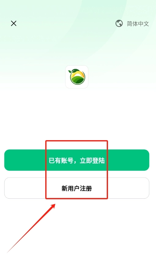 打开应用后,没有账号的用户请点击新用户注册选项,已有账号的用户可直接点击登录按钮。