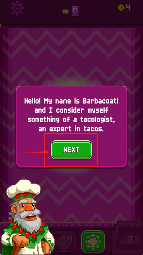听完厨师自我介绍,点绿色NEXT按钮继续游戏。