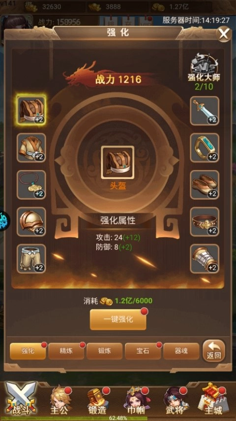 上阵3名武将,能显著提升战力,不管武将是否出战,都会增加全队属性。