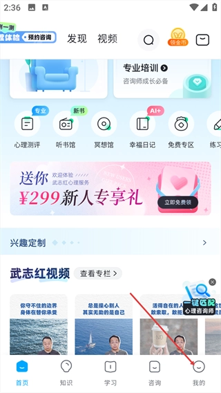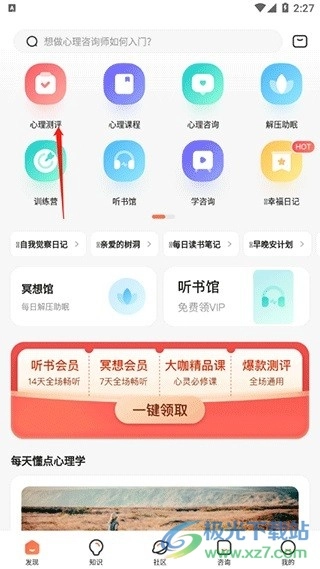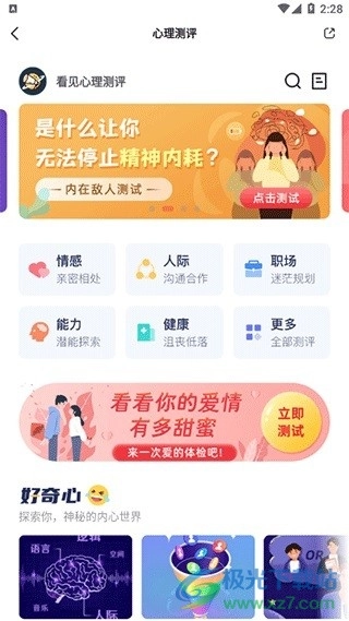 进入软件后,在首页的第一个功能就是心理测评。
