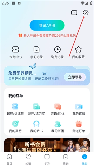 进入个人中心后,找到右上角的【设置】按钮。