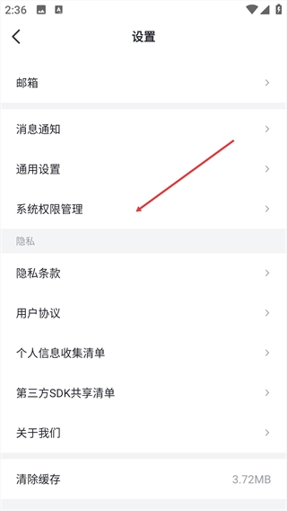 在设置页面中,选择【系统权限管理】选项。
