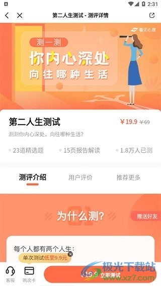 心理测评的类型划分得十分细致,用户还能实时了解参与测评的人数,而且检测方式也相当便捷。