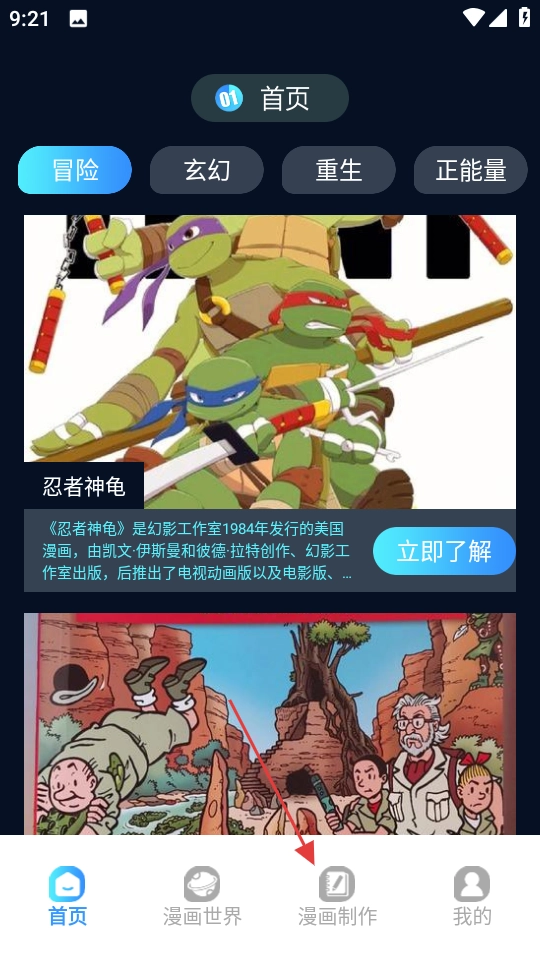 打开追漫大师,点击底部导航栏的漫画制作。