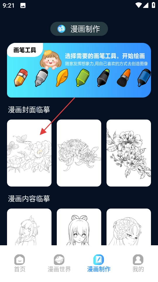 进入漫画制作页面后,选择漫画封面临摹中的图案。
