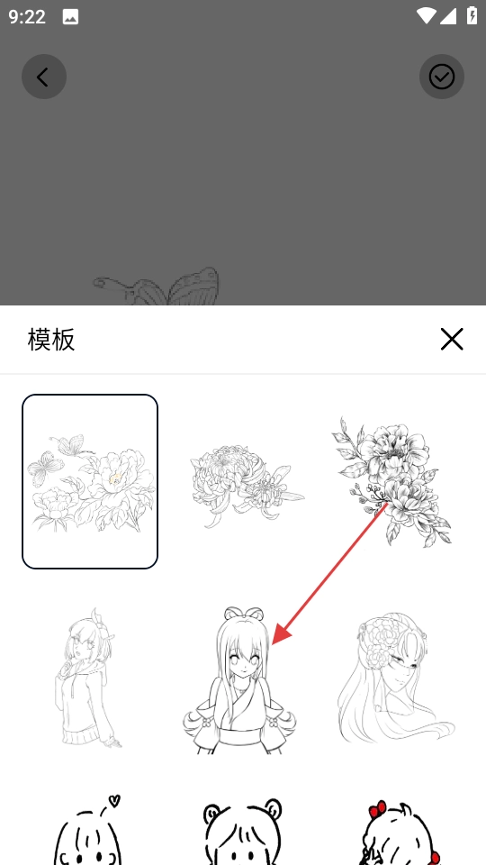 在弹出的模板列表中,选择喜欢的模板进行绘画。