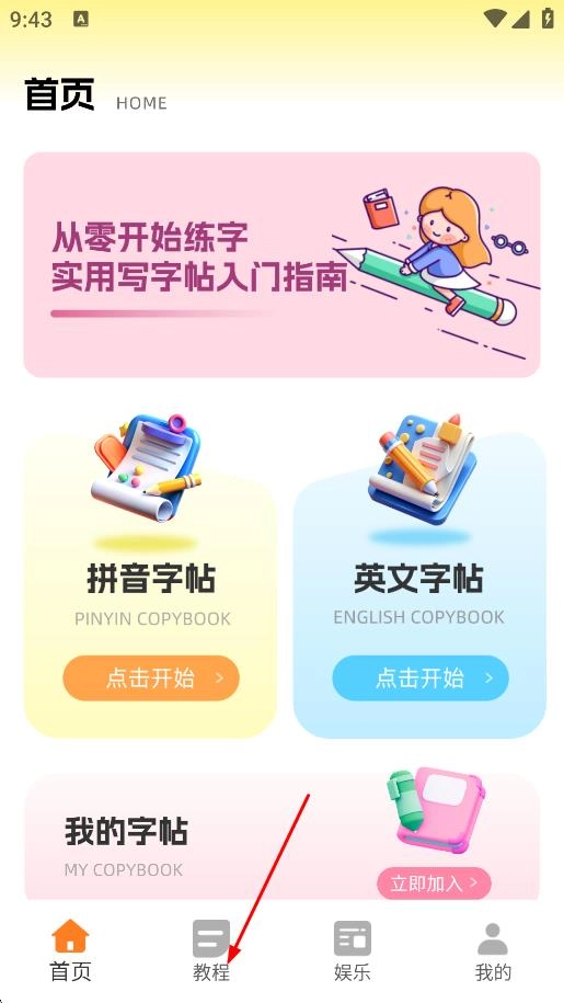 挑选字帖练习:打开后进入字帖选择界面,依据自己的需求(像拼音练习、英文书写、汉字田字格练习等)挑选对应的字帖,点击开始练习。
