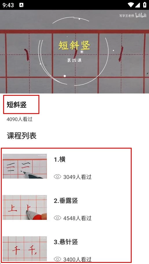 在笔画教程的学习页面,你可以查看笔画课程以及对应的课程列表,从而开展学习活动。