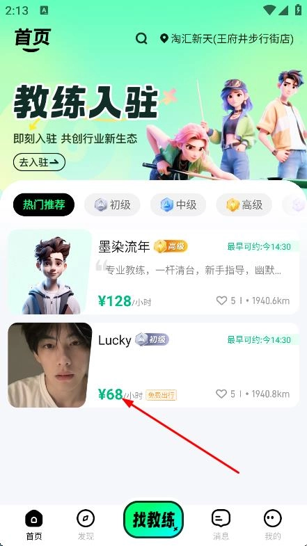 在小香风的首页,挑选一位合心意的教练,然后进入这位教练的详情页面。