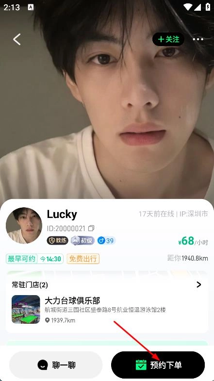 在教练详情页面,点击预约下单按钮,即可进入预约下单页面。
