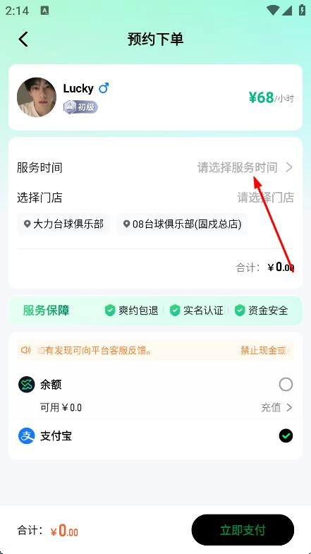 选好服务时间和门店后,点击立即支付,完成预约下单支付。