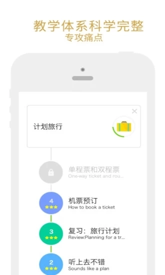 闯关式学习:借助闯关游戏化的学习模式,点燃用户攻克口语难点的热情。用户可从初级班起步,按顺序向高级班发起挑战,循序渐进地提高自身的口语能力。