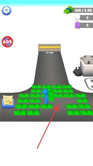 进入游戏后,映入眼帘的是一条铺满金钱的道路,你需要操控小人在这条道路上移动,着手收集散落在各处的金钱。