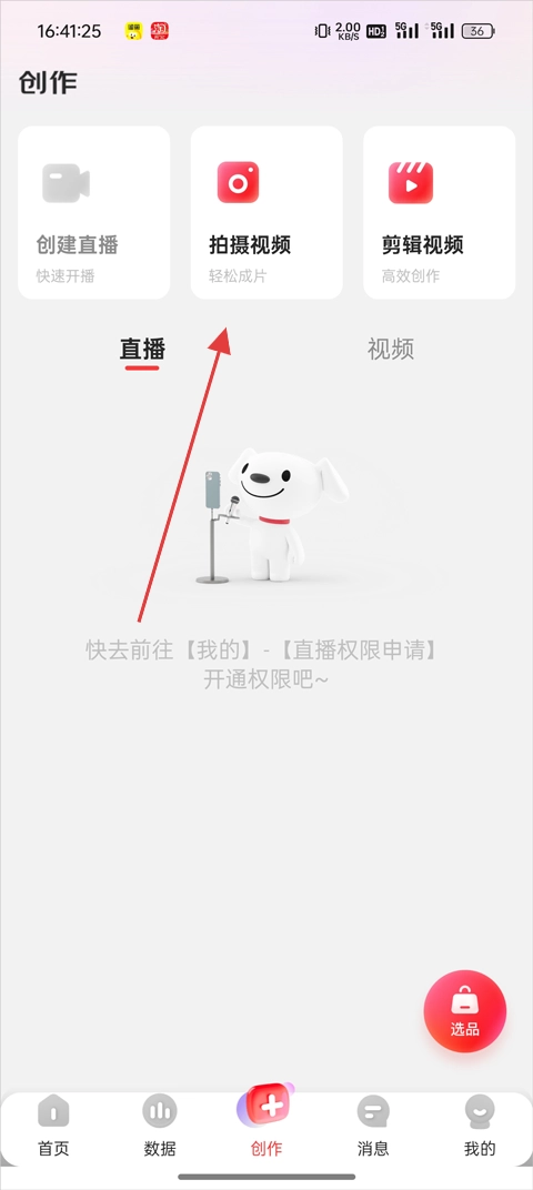 然后打开京东内容助手App,在首页点击底部的【创作】按钮;