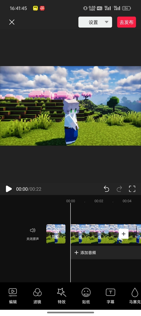 视频拍摄完成后,能对其进行简单剪辑或添加特效,接着点击【去发布】按钮。