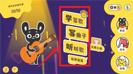 点击“学写歌”选项,就能进入学习界面,按照步骤一步步掌握歌曲创作的基础要点。