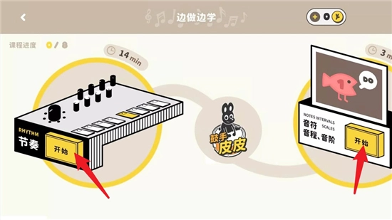 在选好合适的节奏或音符模块后,点击“开始”按钮,就能进行节奏音高练习的相关操作了。