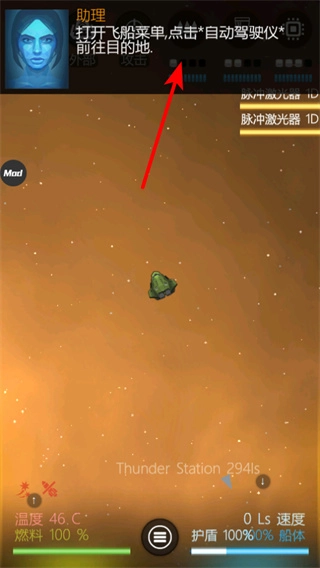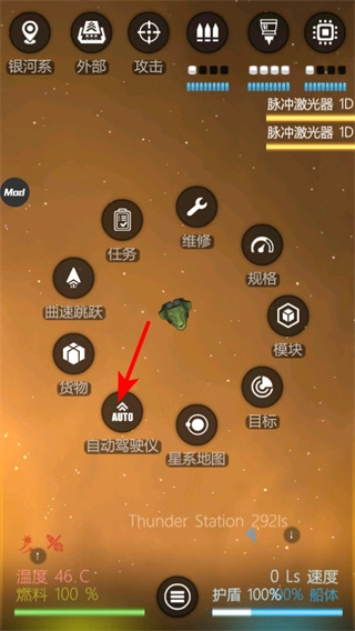 打开飞船菜单后,点击自动驾驶仪,飞船即可自行驶向目的地。这一操作是提升航行效率的关键,能有效节约手动操控所耗费的时间。