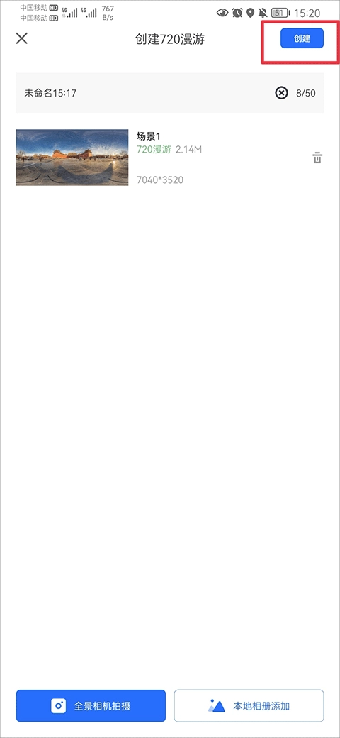2、进入后,用户可以点击全景相机拍摄全景图,也可以点击本地相册添加拍摄的全景图照片来进行制作,例如本地相册添加