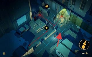 “躲避敌人”,借助暗影区域,绕开敌人的巡逻路线,遭遇危险时可投掷道具(如瓶子)进行干扰。