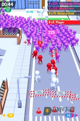 这款游戏的机制十分有趣,玩家可以通过持续吸纳零散的行人来壮大自己的队伍。