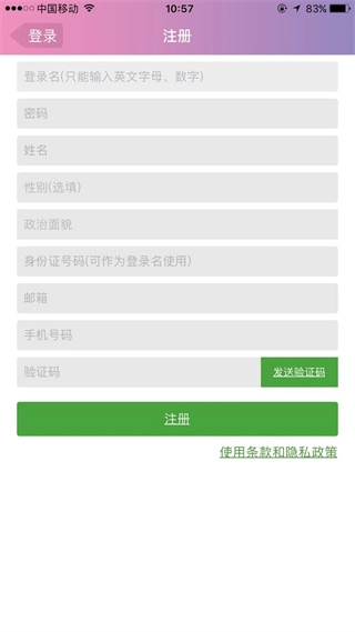 点击右下方我的,输入详细信息,点击注册