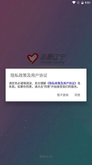 首先打开志愿辽宁最新版本,运行软件,同意协议