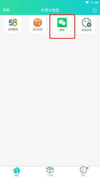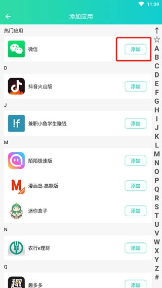 这里能看到我们手机里的所有应用,而且这些软件都支持多开功能,现在我们选择添加微信。