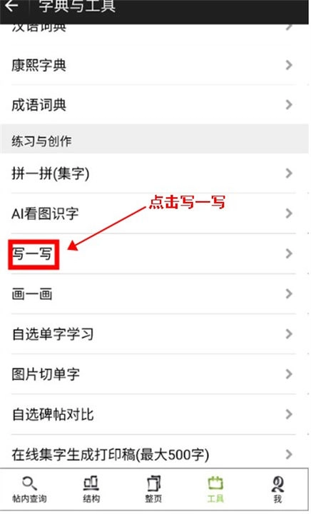 随后用户可以选择中间的“写一写”。