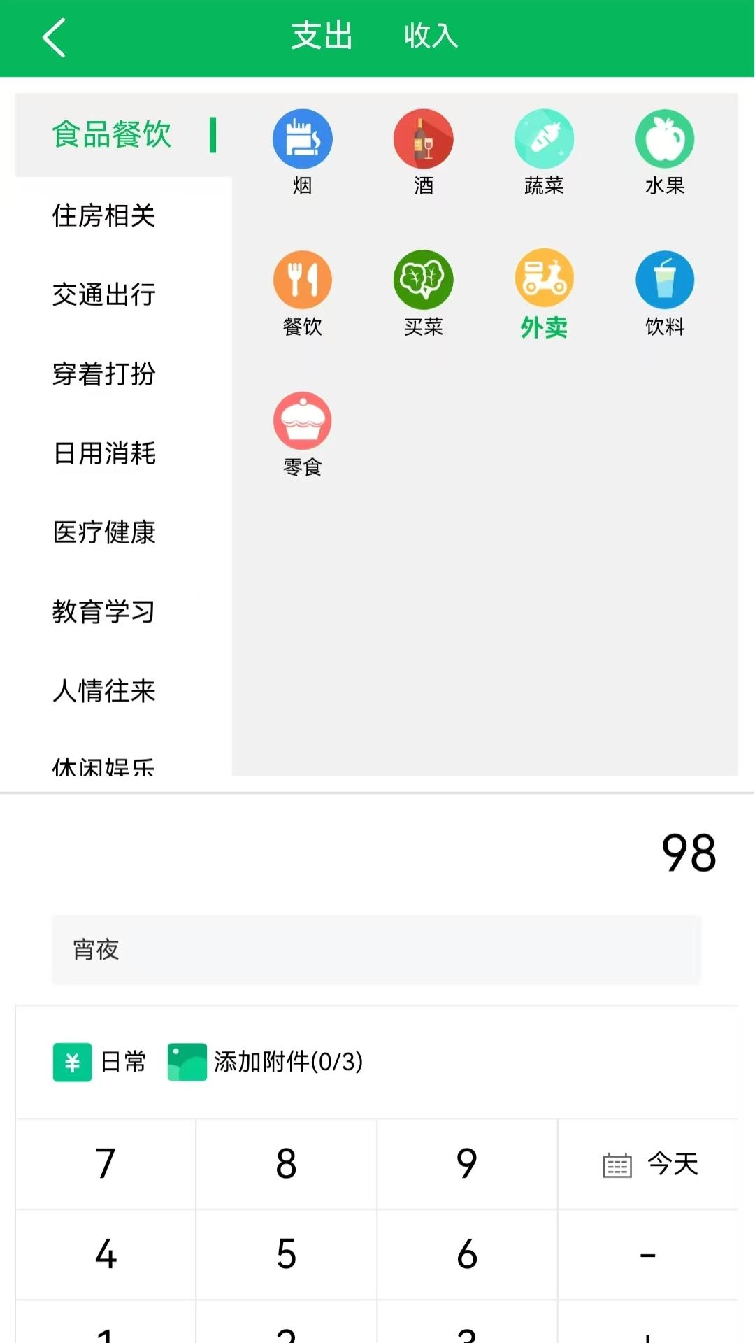支持用户进行支出记账,在各类支出项目下,用户都可以记录自己的每一笔支出情况。