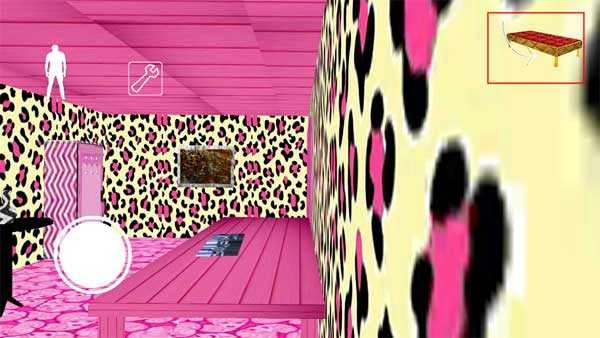 打开游戏后,你会在一个满是粉色的房间里醒来,床的附近有个右上角的按钮,点击这个按钮就能躲到床底下了。