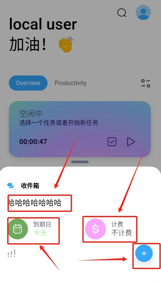 在页面中填写任务名称,选定到期日期并设置是否计费,点击右下角的加号按钮即可完成创建操作。
