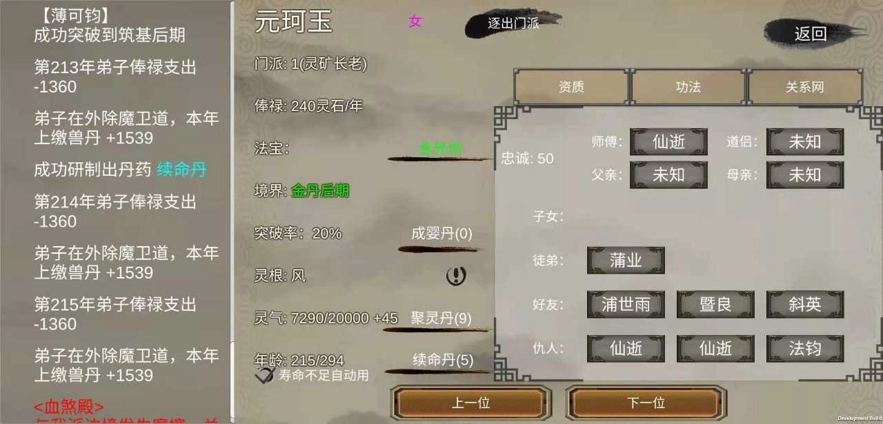 记得给长老和单灵根天赋的弟子开启自动续命功能,避免他们意外死亡。