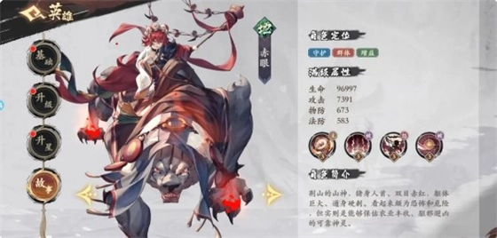 盾的选择上,【地】属性的赤眼或朱厌都是可行的——前期它们能提供大部分增益效果,不过在熟练度满级前生存能力稍弱,但女英的治疗刚好能补上这个短板,让它们可以站得更久。