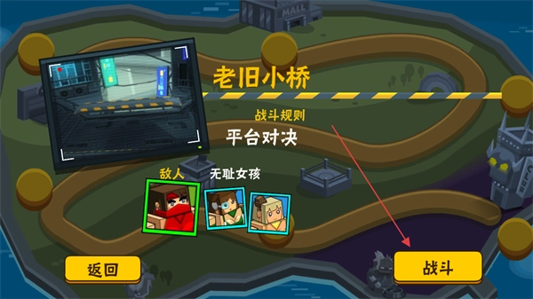挑选像老旧小桥这类关卡,点击战斗按钮就能进入战斗场景,这里的战斗规则是平台对决。