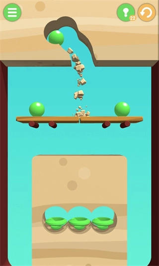 障碍物也能加以利用,要是遇到一块斜板,就能让小球顺着它滑进洞里。