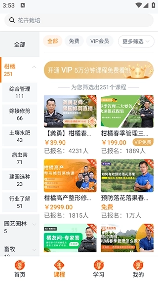 想要免费学习农业知识,可以选择上面的“免费”选项