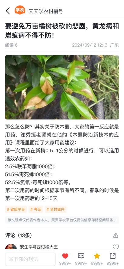 天天学农是800万+农业人信赖的在线学习与技术交流平台,这里汇聚了种植户、养殖户、农技员等从业者,大家可以分享种养经验。平台还有24小时在线的AI智能助手,能提供病虫害识别、学习推荐等服务,助力用户掌握现代农业技术。