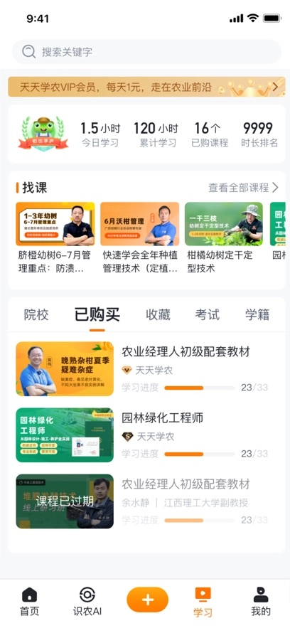天天学农是专业的农业在线学习平台,用户在平台上可获取全面的学习服务,浏览海量课程,接触丰富的知识内容,从而快速掌握农业技能,有需要的朋友不妨现在就来使用!