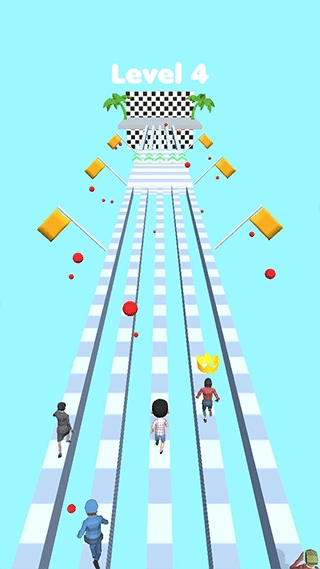在关卡赛道里,操控角色向前行进,借助沿途的道具,帮助自己更快地推进赛程。