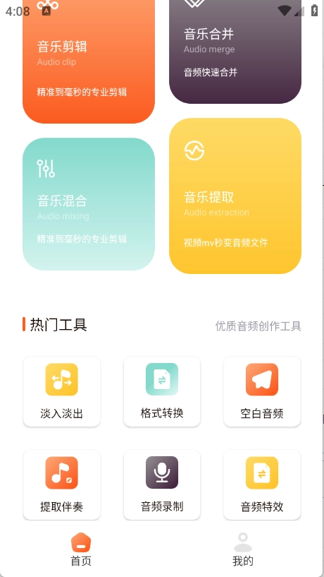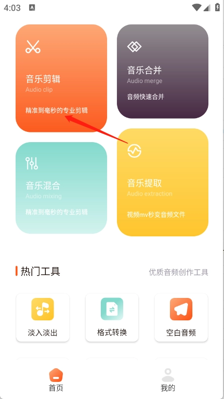 进入到首页,点击“音乐剪辑”。
