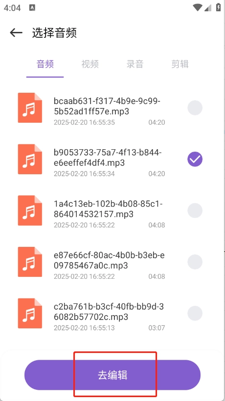 选择要剪辑的音频,点击“去编辑”。
