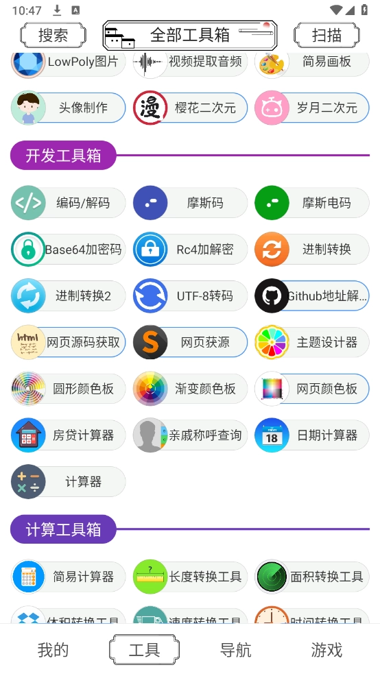 荷花工具箱是一款功能全面的手机工具箱,整合了各类实用工具、知识导航与趣味小游戏。所有板块均为免费提供,分类细致入微,能充分满足日常、办公及学习等多场景需求。此外,它无需安装,即开即用,十分便捷。