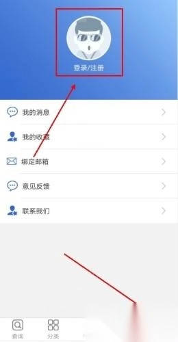 打开app后进入我的界面,点击顶部登录或注册区域启动账户创建。