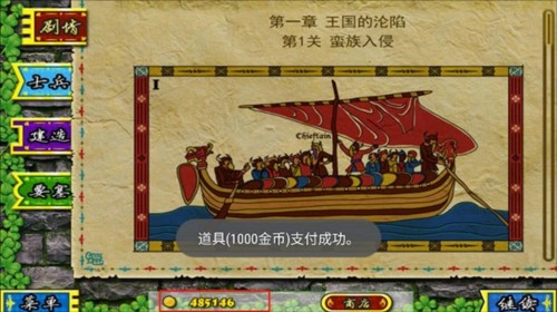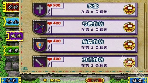 敌军来袭前购买士兵、建筑或要塞准备,战斗中可点击士兵移动至战斗区域,拖拽实现精准布阵。