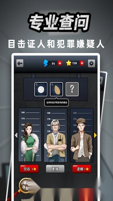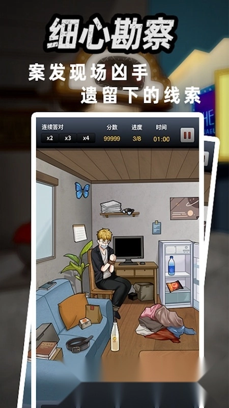 你得闯过各式各样不同类型的案件关卡,作为侦探,每一个人都要竭尽全力谜题。