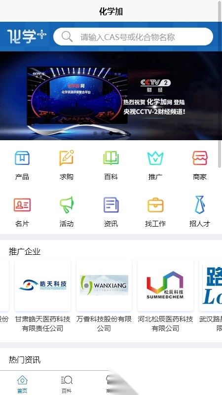 化学加是精细化工与医药日化领域从业者不可或缺的手机应用,具备百科查询、产品搜索、行业动态、招聘求职以及电子名片制作等功能,通过整合产业资源为专业工作提供支持。化学加网与化学加协同提供原料查找、需求发布、商家对接、价格行情查询、产品合成路线检索、人才招聘、职位应聘及广告推广等服务。目前平台已收录500万条产品供需信息、3.2万家商户数据以及4000万个CAS号对应的化合物百科内容,同时持续更新专业前沿的高质量资讯。