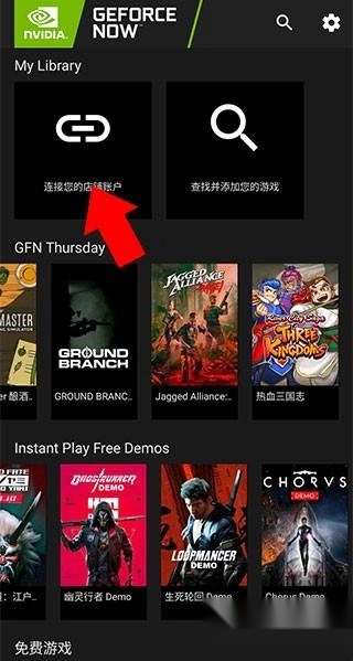 1、下载安装并打开英伟达云游戏App,注册登录后点击【连接您的店铺账户】按钮。