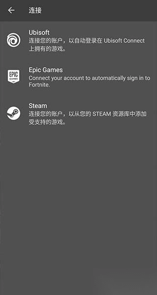 3、账号绑定:无缝连接Steam、Epic Games等平台,库中游戏直接串流。