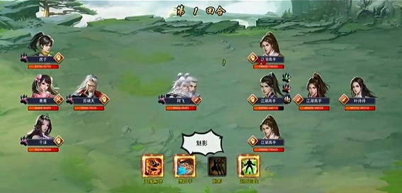 最终对决:文非羽持宝图,鸠摩智抢夺。注意其高闪避阵型,影门门主被神秘人击退。
